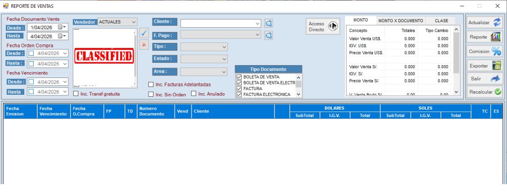 Paso 2: Ingresamos a Reporte de Ventas y se nos abrirá el siguiente panel.