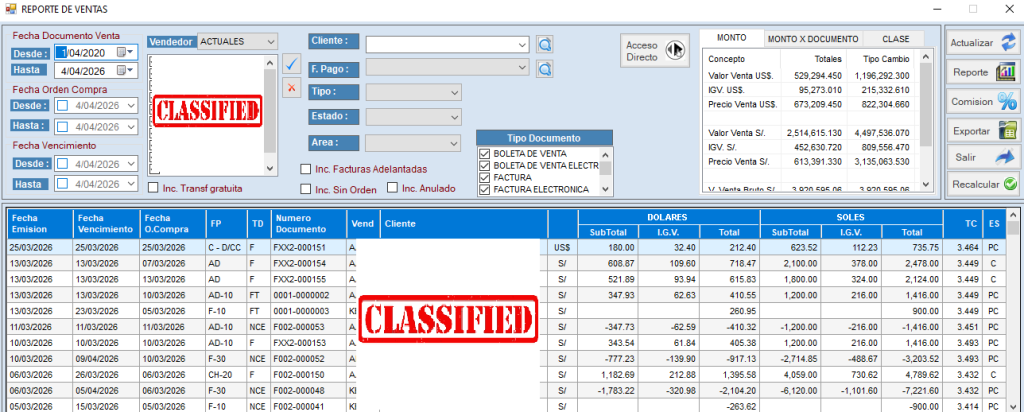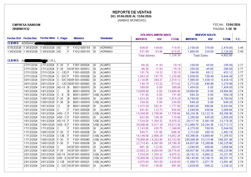 Ejemplo de reporte de ventas y compras en Perú
